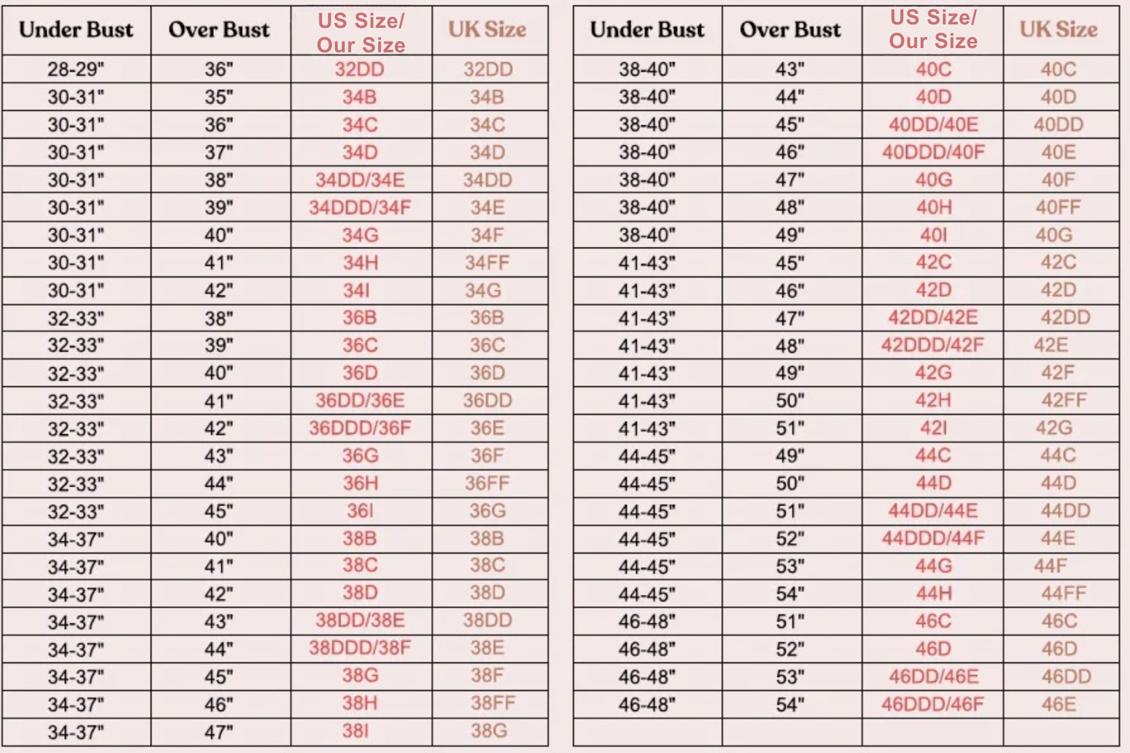 💡Step 3: Use the chart to find your band and cup size based on your measurements.